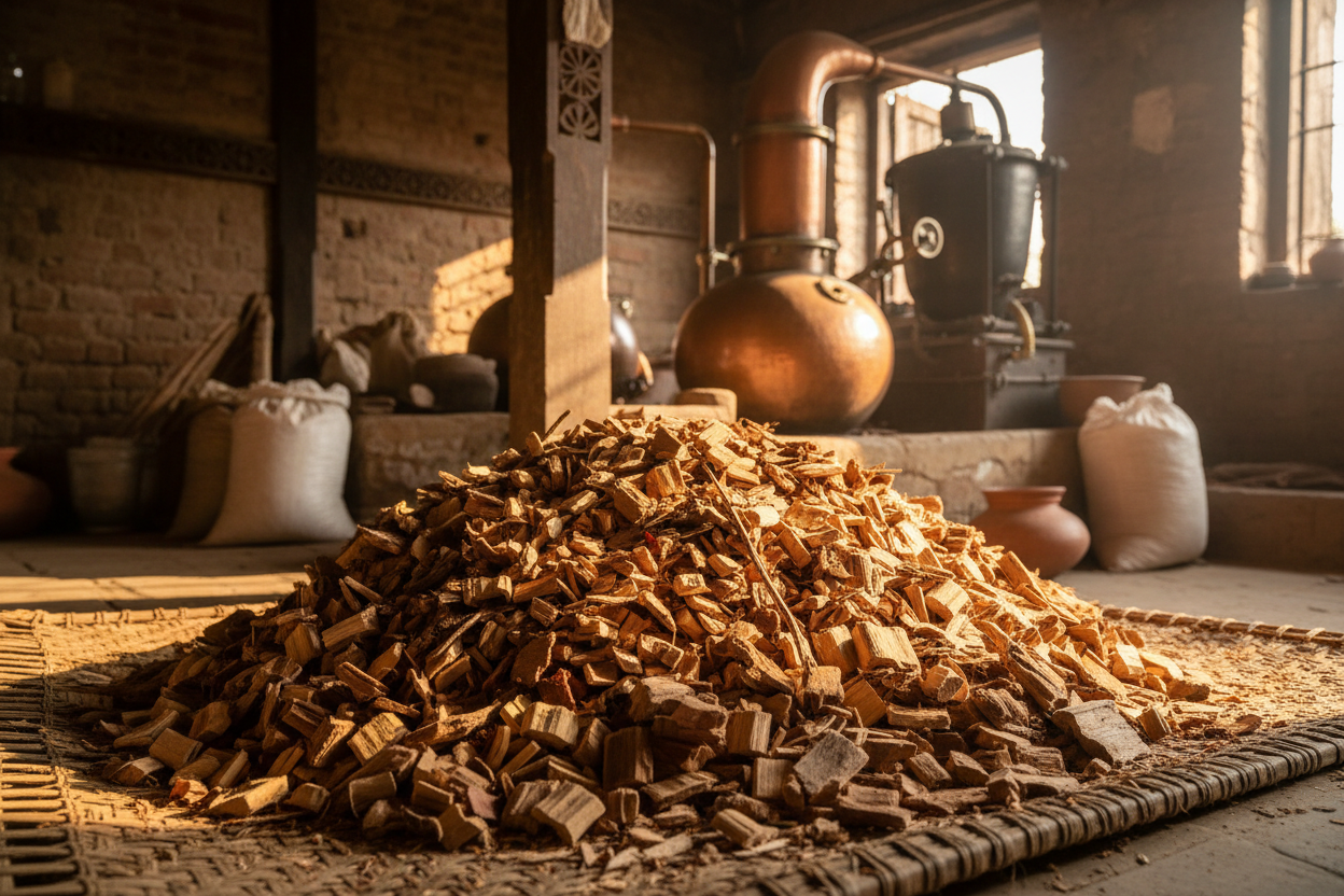 Unlike most santal distillers, we choose the materials that are not procured from typical wilds high-lands of Sri Lanka. It was time to go hunting, or exploring or extingishing the thirst for the cream of the crop and as an area that is not tourist savvy Santal was found in southern arid (dry) zone, where in fact a university research publication recommend that of the best wild Santal prone areas, was Middeniya, Beliatta & Weeraketiya etc., we decided to chose those heartwood bound with roots for over 60% proportion.